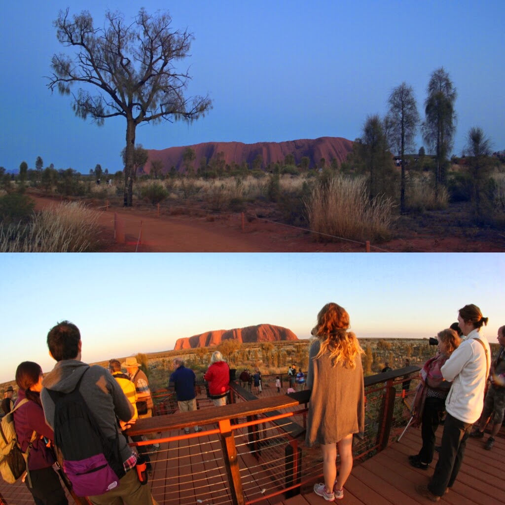 Ayers Rock auringonnousun aikaan oli kyllä näkemisen arvoinen joten jos joku sinne suuntaa joskus niin kannattaa ehdottomasti mennä heti aamusta! Tiia ja Sini tykkäs enemmän ilta-auringosta, tosin se johtui luultavasti siitä ettei ne aamulla jaksaneet edes nousta autosta ulos. "Autosta katseleminen oli paljon parempi kuin kärpästen seassa oleminen" oli tyttöjen kommentti äsken... Aamulla siellä ei kyllä edes ollut kärpäsiä, mitä päivisin muuten oli ainakin tsiljoona.